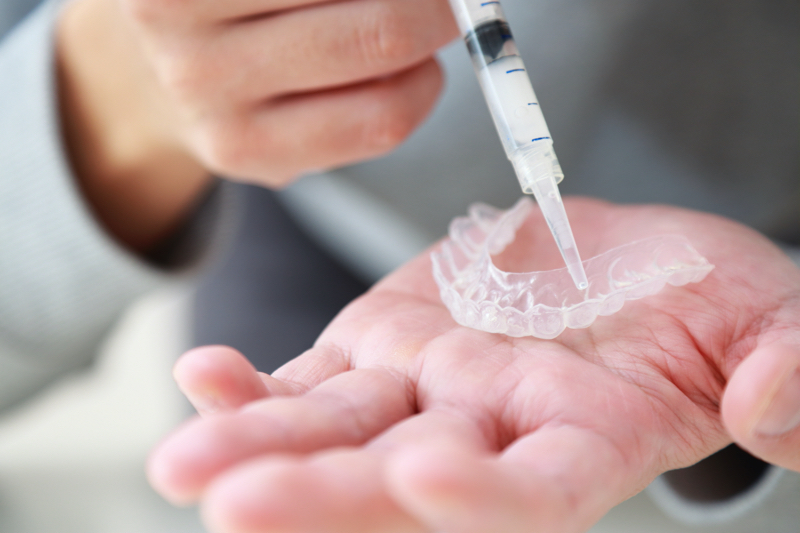 当院では、ご自宅で薬剤の入ったプラスチックのトレーを口の中に入れて行うホームホワイトニングをお勧めしております。